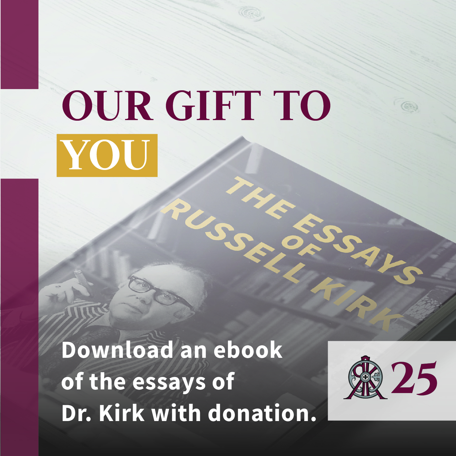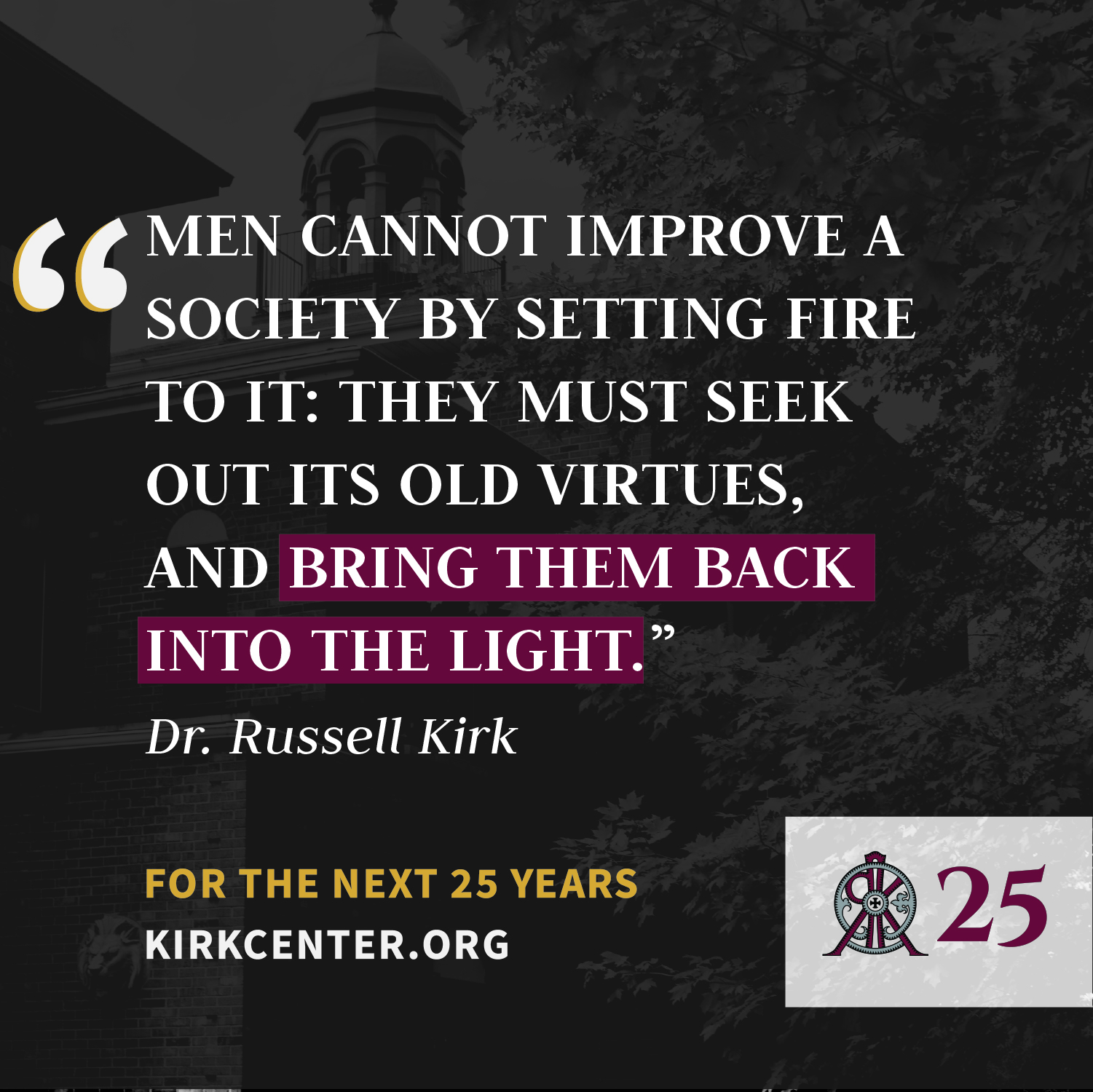 To participate in the 25th anniversary campaign by including the Russell Kirk Center in your estate planning, please visit the Russell Kirk Legacy Society page here.